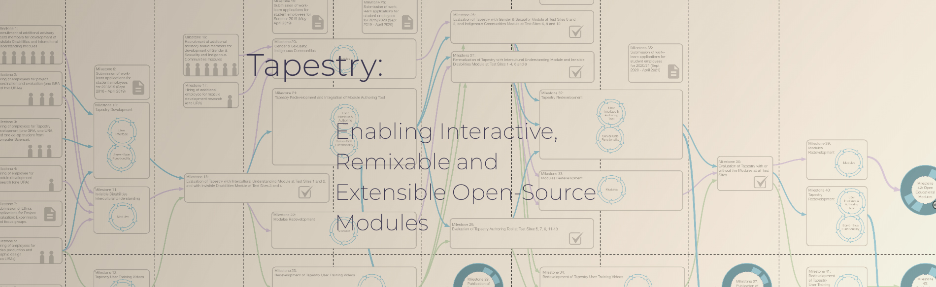 Tapestry will allow for the production of interactive, remixable, reusable, and extensible educational modules and aims produce a new model for online course content production that is learner-centered, constructivist, and emphasizes student-faculty co-creation and reusability. The tool addresses some shortcomings of HTML5 Package (H5P) in particular, and online course content in general.