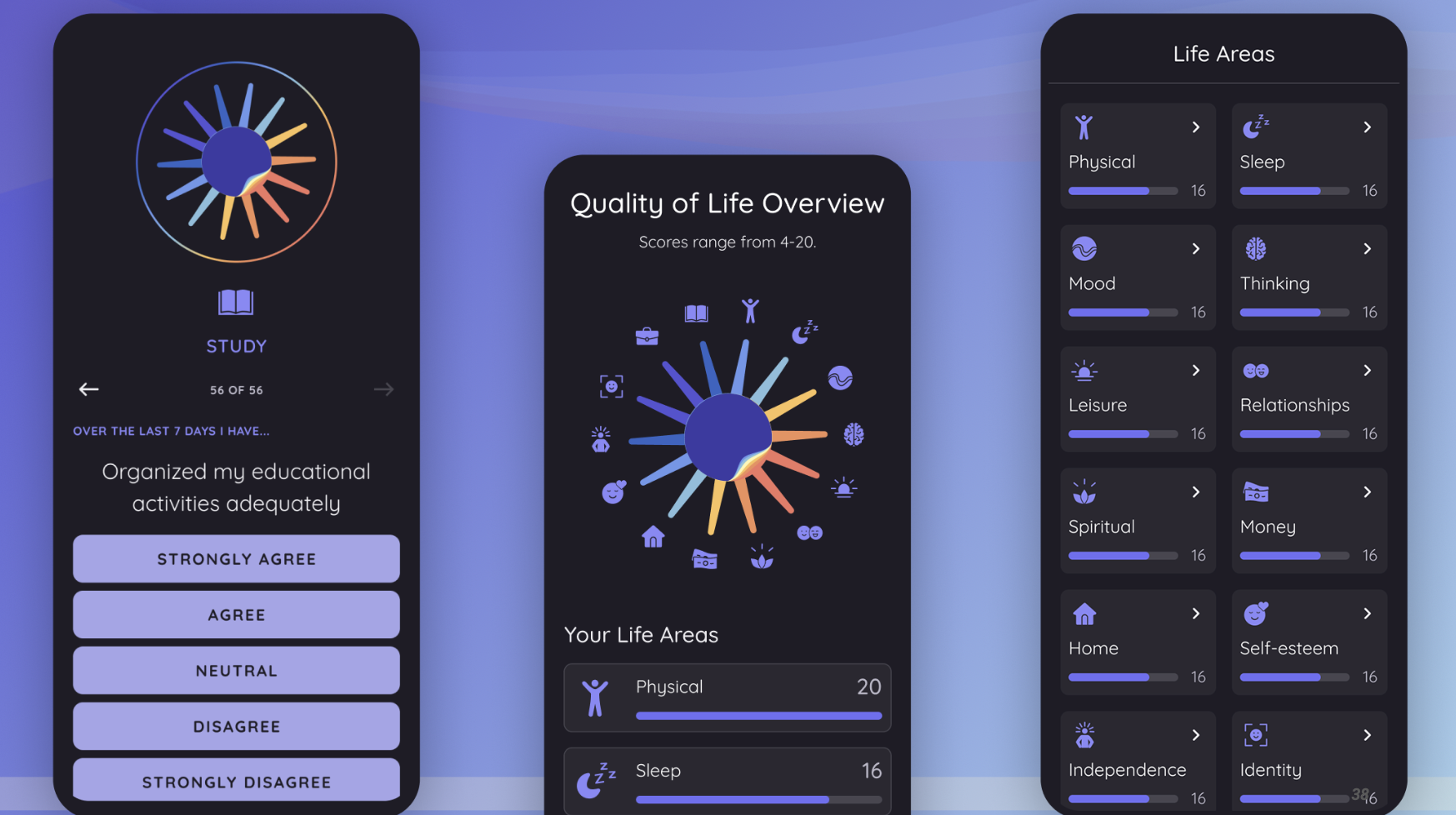 Con solo unos minutos al día, PolarUs le ayuda a alcanzar un equilibrio de vida y también a controlar el trastorno bipolar. Hemos desarrollado un sistema único para medir la calidad de vida y hemos recopilado las mejores pruebas científicas y herramientas sobre estrategias de bienestar para el trastorno bipolar. A través de controles diarios, semanales y mensuales, PolarUs le ayuda a monitorizar su calidad de vida en los aspectos más relevantes de su día a